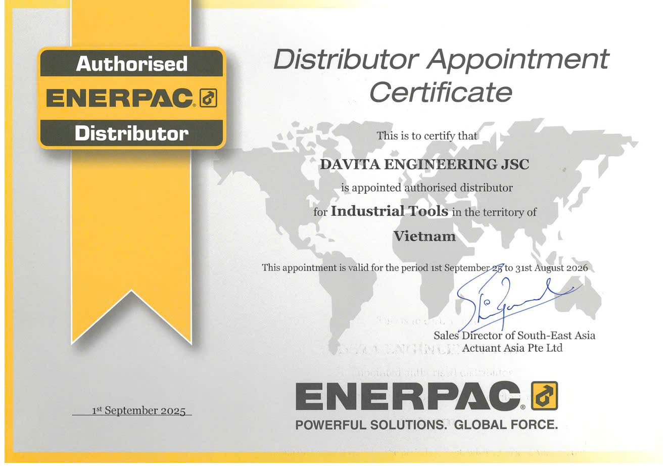 DAVITA là công ty chuyên cung cấp các sản phẩm và giải pháp kỹ thuật hàng đầu tại Việt Nam, với đội ngũ chuyên gia giàu kinh nghiệm và hệ thống dịch vụ khách hàng tận tâm. Việc trở thành Đại lý Ủy quyền chính thức của Enerpac không chỉ là sự công nhận cho năng lực và uy tín của DAVITA mà còn giúp công ty tiếp tục thực hiện cam kết mang đến những giải pháp tối ưu nhất cho khách hàng trong nước.