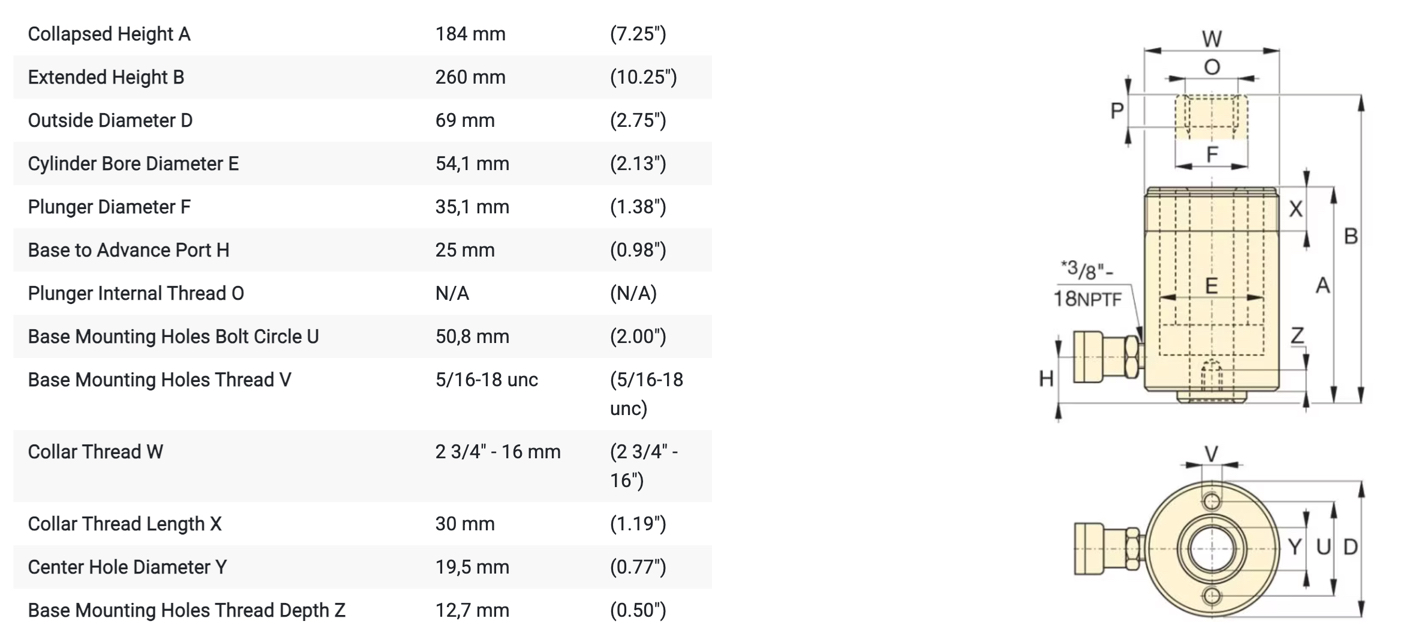 1Kích thủy lực 1 chiều Enerpac loại rỗng tâm, Tải nâng: 12 tấn, hành trình 76mm