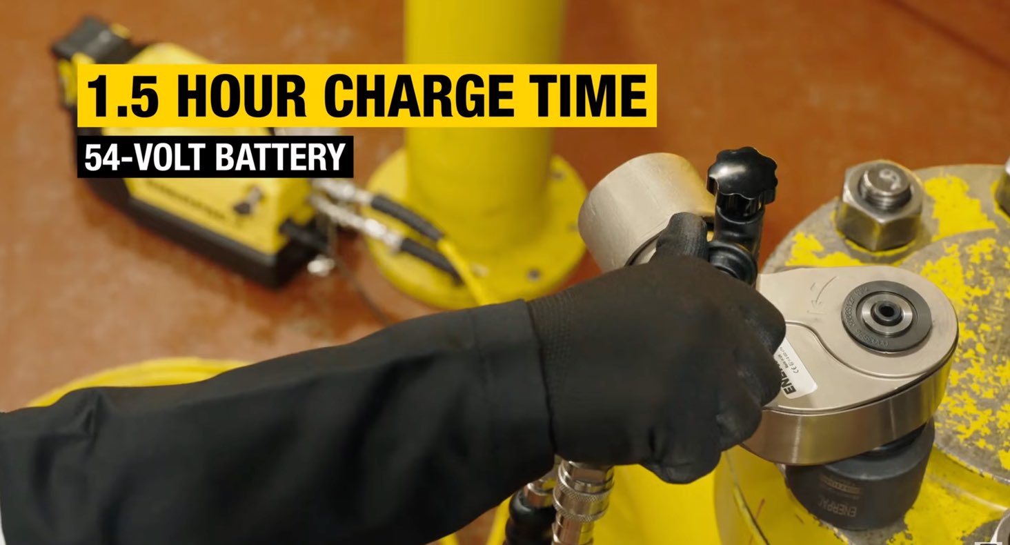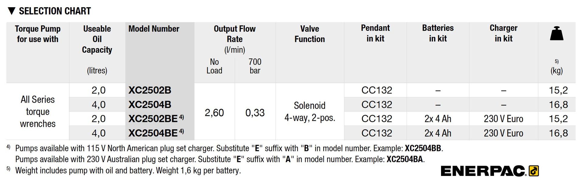 Bơm Enerpac chạy pin dùng cho Cờ lê Thủy lực, bình dầu 4 lít, đồng hồ đo áp, van 4/2, gồm Sạc điện 230V và 2 Pin