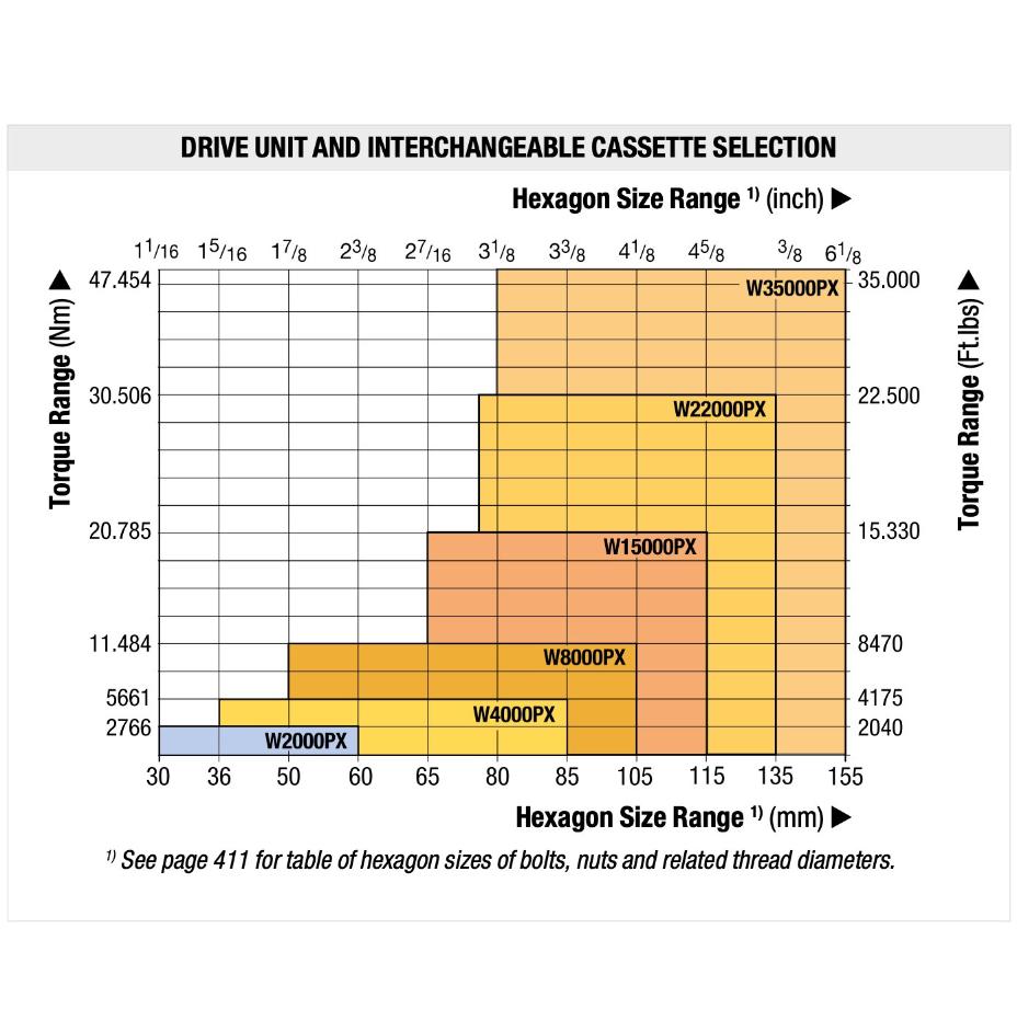 5. Drive Unit W-Series selection table/ Bảng lựa chọn các dòng Cờ lê thủy lực dòng thân mỏng W-series tương ứng size Nut (AF Size) như bên dưới:
