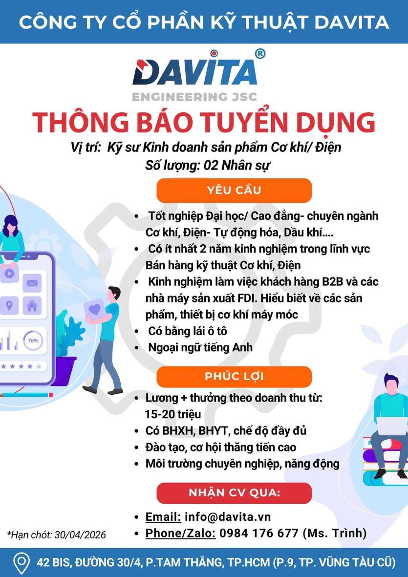 • Có ít nhất 2 năm kinh nghiệm trong lĩnh vực Bán hàng kỹ thuật, ưu tiên trong ngành Cơ khí, Điện
