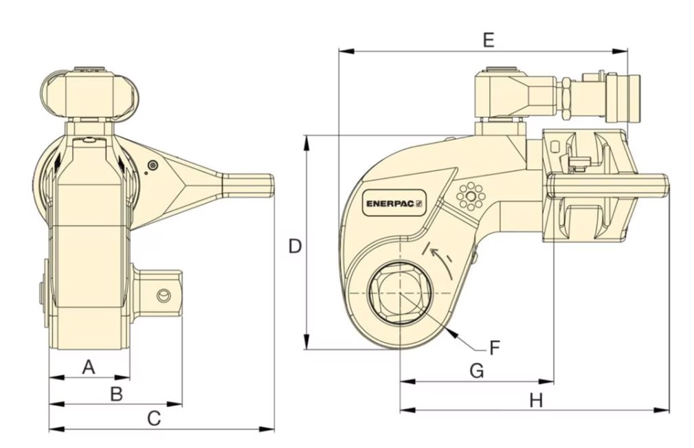 2. Description: Square Drive Hydraulic Torque Wrench, 8338 Nm Torque, 1 1/2 inch Square Drive / Mô tả: Cờ lê thủy lực dạng chụp, trục vuông 1 1/2 inch, lực siết đến 8338 Nm, dòng Pro xoay đầu kết nối ống thủy lực