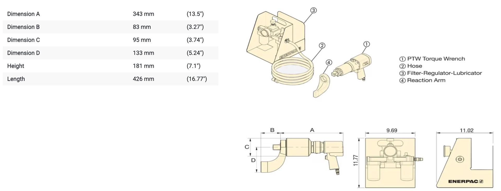 1Pneumatic Torque Wrench, FRL included, 4067 Nm Torque, 1 inch Square Drive