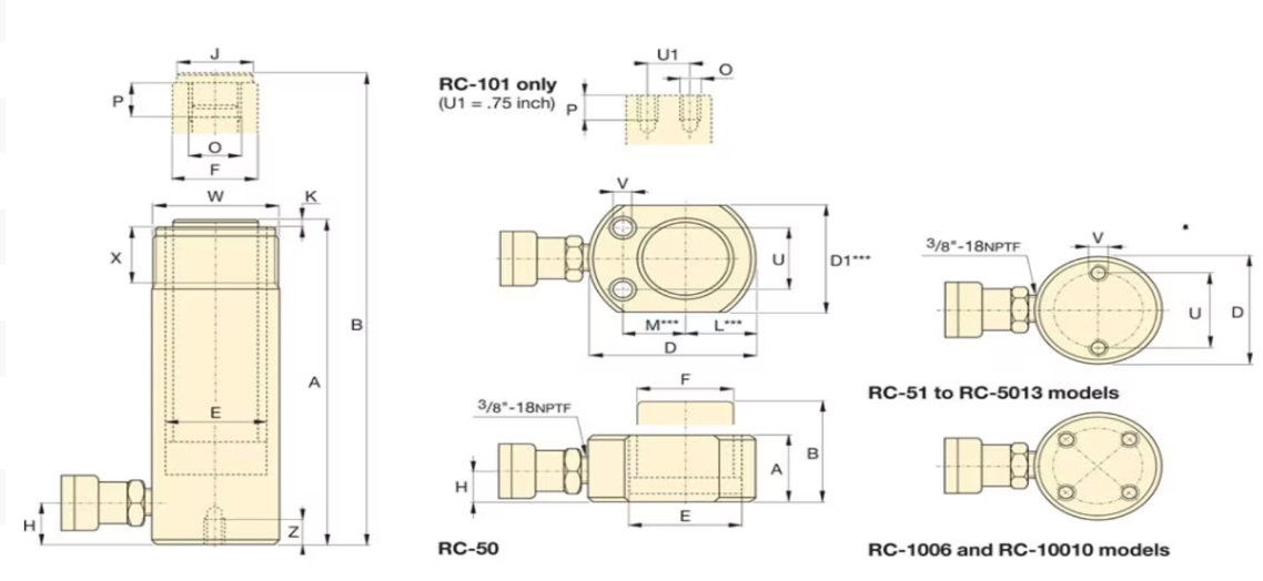 1Kích thủy lực 1 chiều, hãng Enerpac, Tải nâng: 50 tấn, hành trình: 100mm