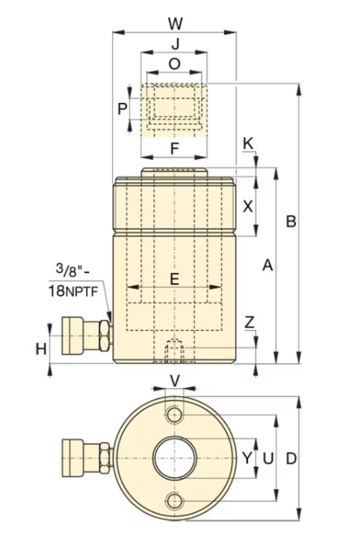 1Kích thủy lực rỗng tâm ENERPAC tác động đơn, Tải nâng: 30 tấn, hành trình 155mm